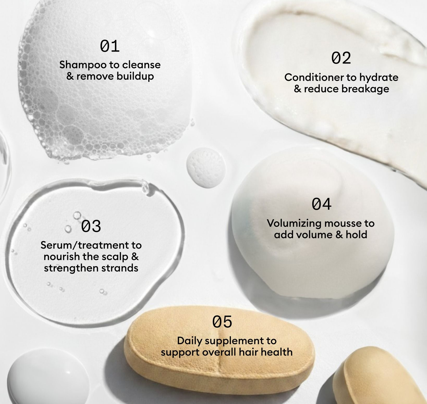 No.3 = repair foundation → fixes damage so hair can retain moisture